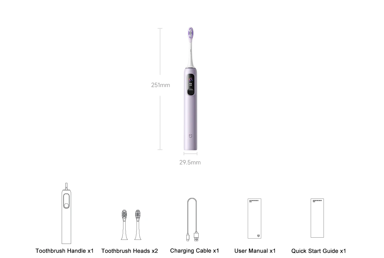 Smart Display: Shows real-time brushing duration, cleaned areas, and remaining battery life, enhancing the user experience.